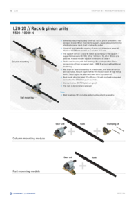 16 LZG CHAPTER 08 – RACK & PINION UNITS LZG 20 // Rack & pinion units 5500 –10000 N > E xtremely robust top-quality universal rack & pinion units with a very compact design. When mounted to…